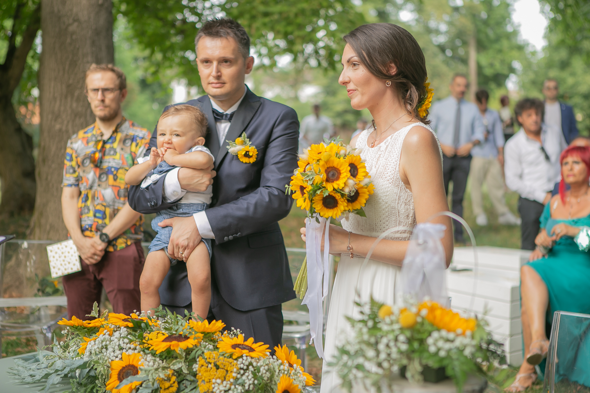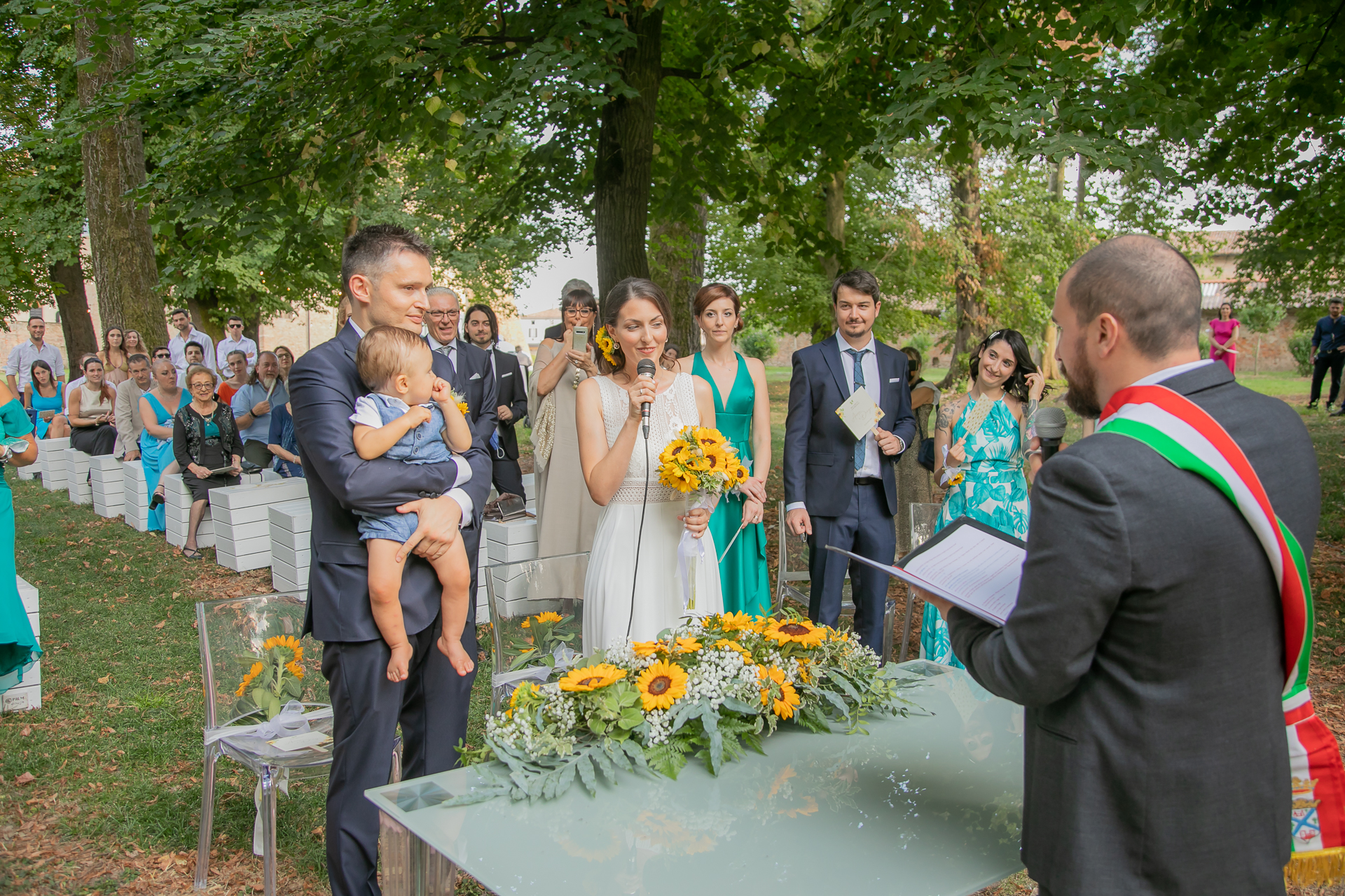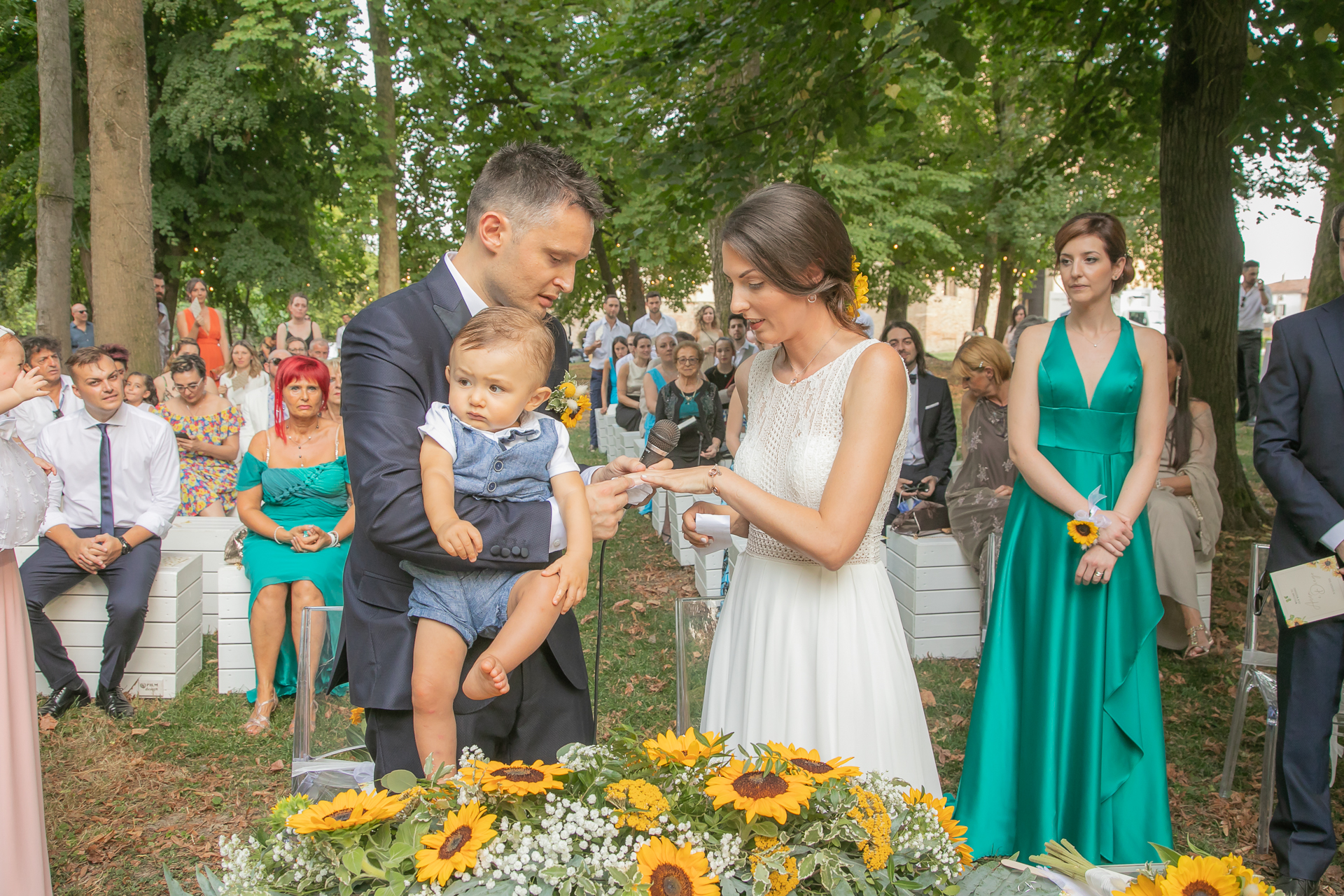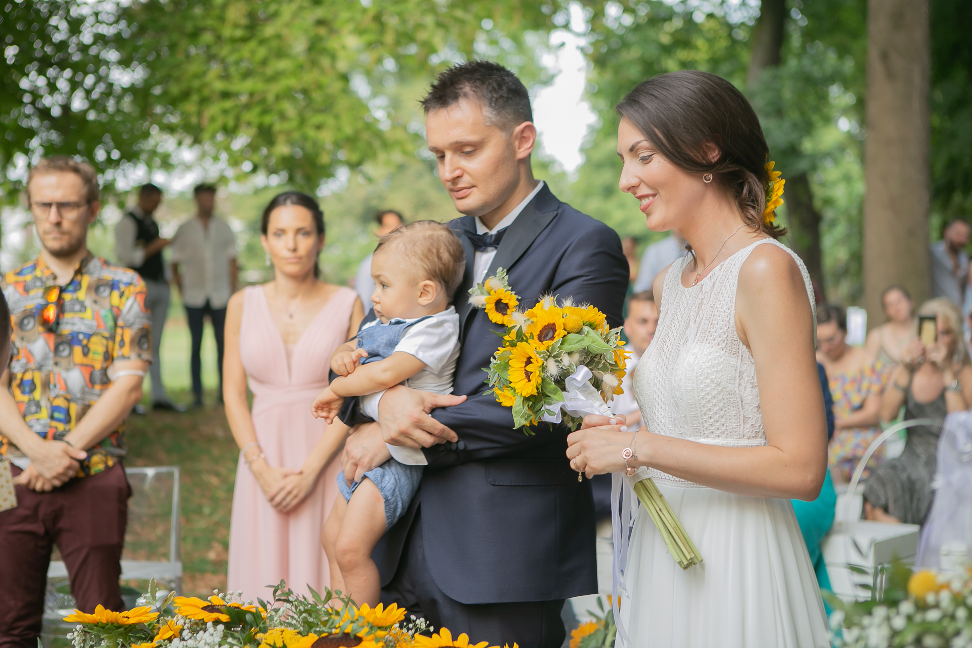 Un’altra bellissima coppia di sposi in una location davvero speciale: Villa Medici del Vascello a San Giovanni in Croce, dimora storica di Cecilia Gallerani, ovvero la famosa Dama con l’ermellino del grande Leonardo Da Vinci. Come sempre l’emozione è palpabile in sguardi e sorrisi che si rincorrono durante la preparazione della sposa e per tutta la celebrazione. Il loro bambino assoluto protagonista di simpatia (e mai fermo!) ha assisito a tutta la cerimonia in prima linea come il più importante testimone dell’amore di mamma e papà. Realizzarre le fotografie in posa è stato poi un vero piacere: eleganza, dolcezza e amore sono l’atteggiamento spontaneo di questi bellissimi sposi in un parco naturale semplicemente magnifico al quale di aggiunge un tocco di colore e vivacità dato dai girasoli.