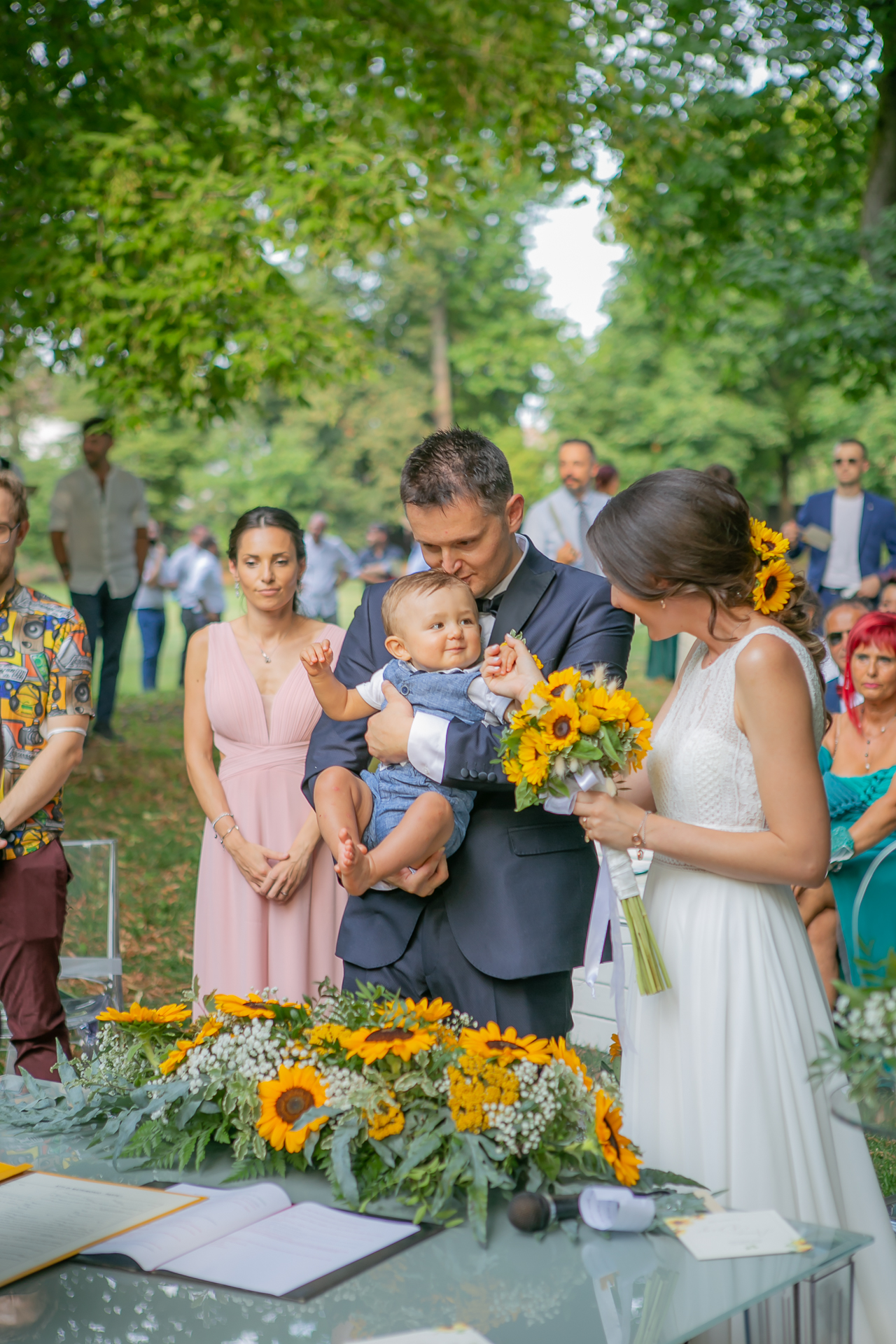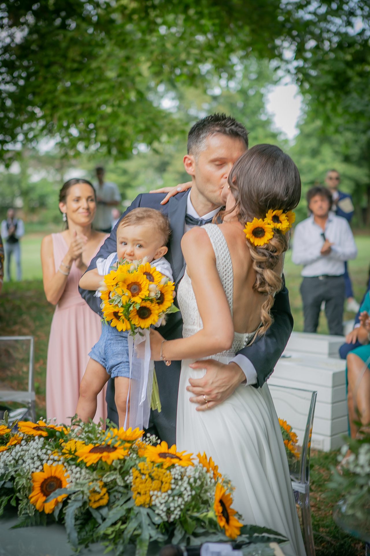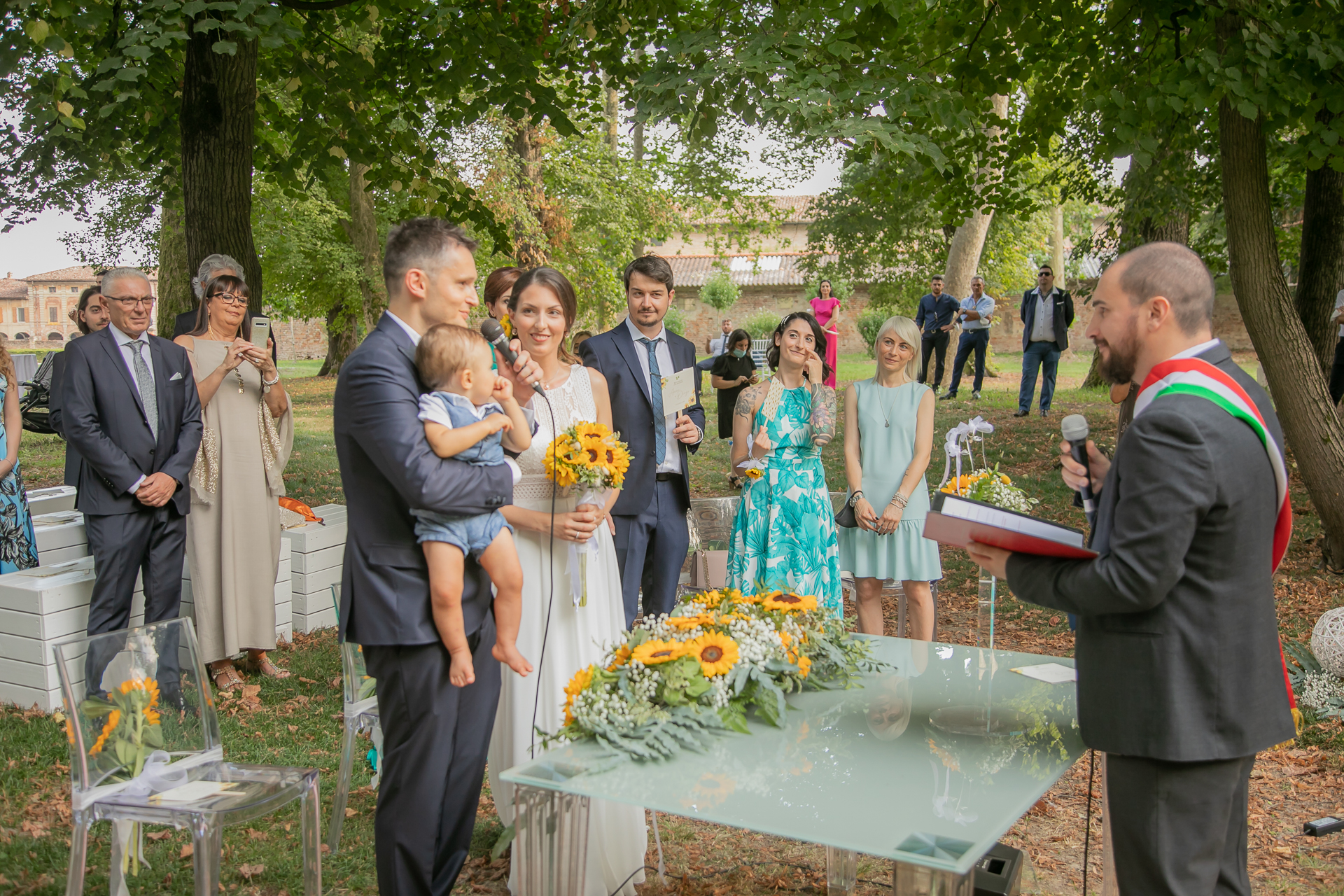 Un’altra bellissima coppia di sposi in una location davvero speciale: Villa Medici del Vascello a San Giovanni in Croce, dimora storica di Cecilia Gallerani, ovvero la famosa Dama con l’ermellino del grande Leonardo Da Vinci. Come sempre l’emozione è palpabile in sguardi e sorrisi che si rincorrono durante la preparazione della sposa e per tutta la celebrazione. Il loro bambino assoluto protagonista di simpatia (e mai fermo!) ha assisito a tutta la cerimonia in prima linea come il più importante testimone dell’amore di mamma e papà. Realizzarre le fotografie in posa è stato poi un vero piacere: eleganza, dolcezza e amore sono l’atteggiamento spontaneo di questi bellissimi sposi in un parco naturale semplicemente magnifico al quale di aggiunge un tocco di colore e vivacità dato dai girasoli.
