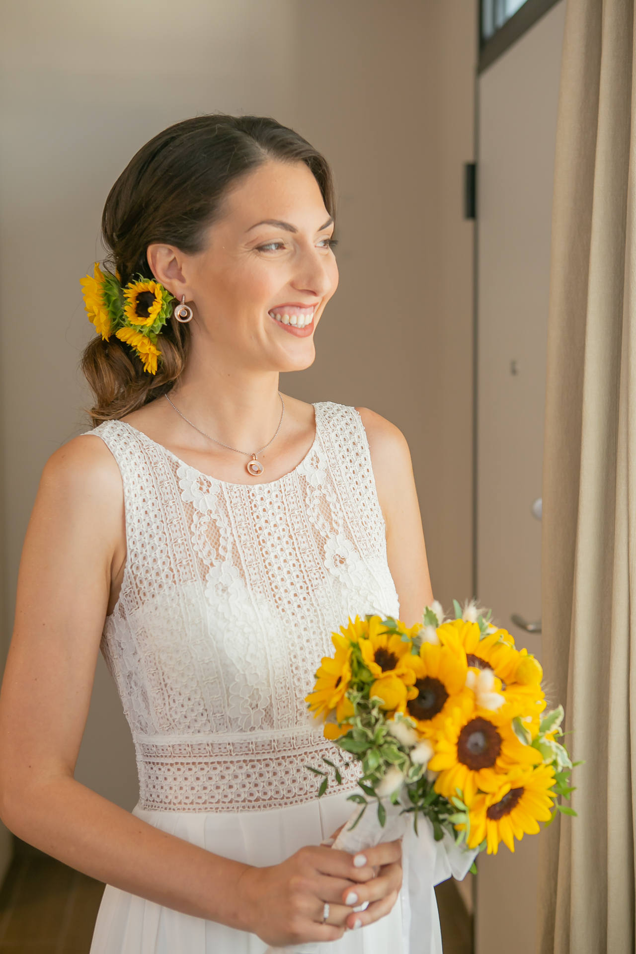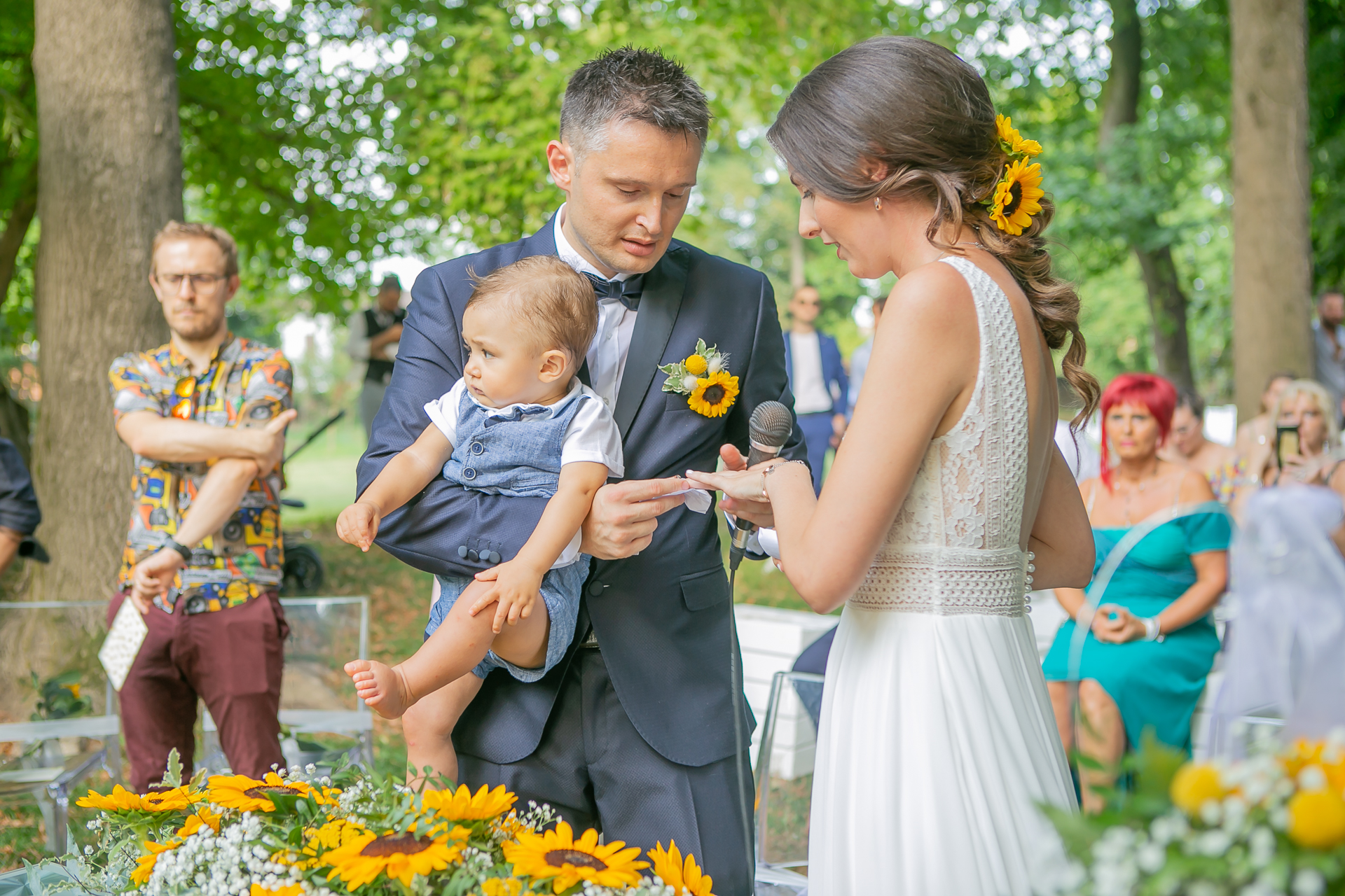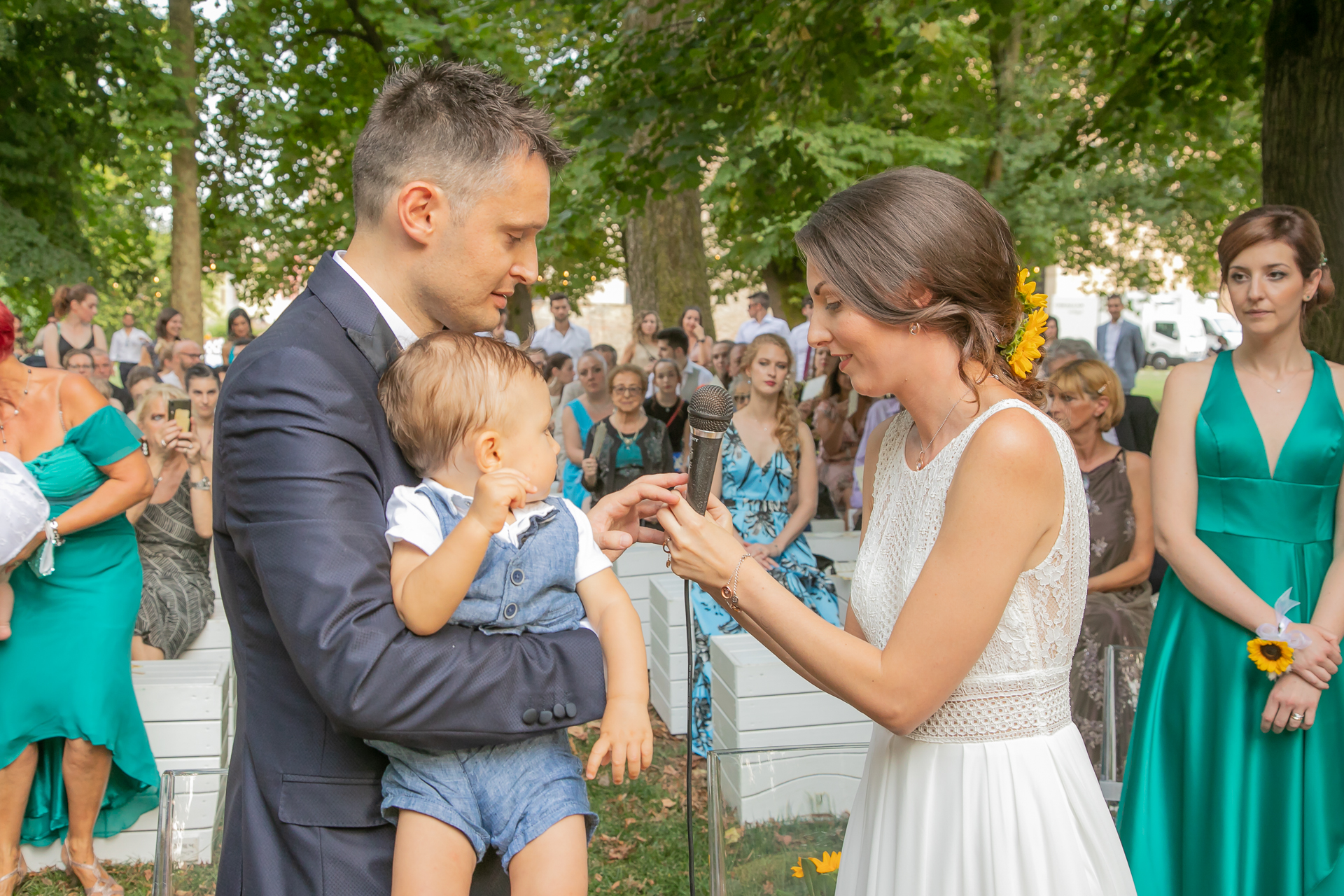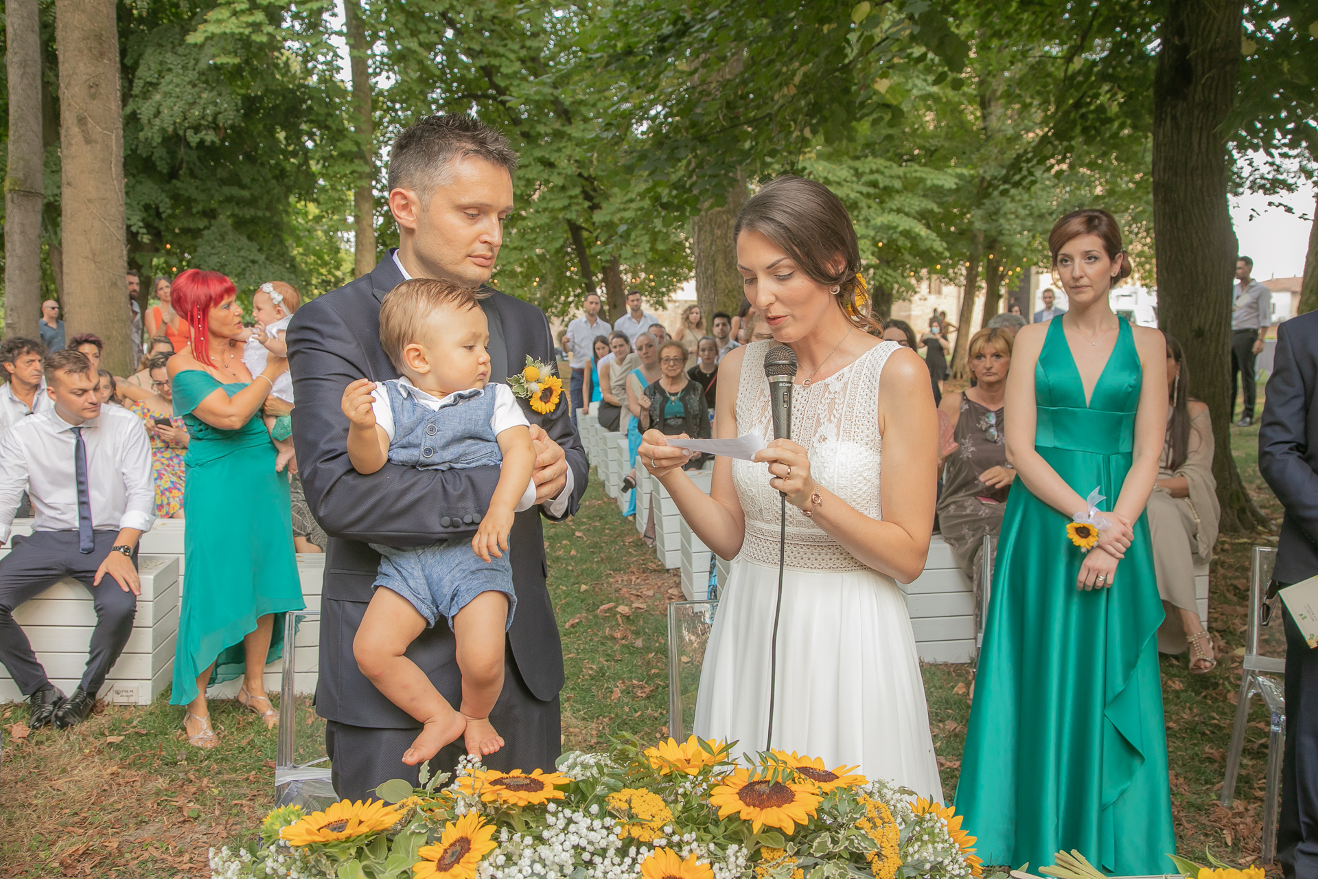 Un’altra bellissima coppia di sposi in una location davvero speciale: Villa Medici del Vascello a San Giovanni in Croce, dimora storica di Cecilia Gallerani, ovvero la famosa Dama con l’ermellino del grande Leonardo Da Vinci. Come sempre l’emozione è palpabile in sguardi e sorrisi che si rincorrono durante la preparazione della sposa e per tutta la celebrazione. Il loro bambino assoluto protagonista di simpatia (e mai fermo!) ha assisito a tutta la cerimonia in prima linea come il più importante testimone dell’amore di mamma e papà. Realizzarre le fotografie in posa è stato poi un vero piacere: eleganza, dolcezza e amore sono l’atteggiamento spontaneo di questi bellissimi sposi in un parco naturale semplicemente magnifico al quale di aggiunge un tocco di colore e vivacità dato dai girasoli.